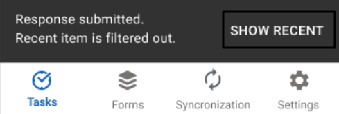 Click the Show recent button to activate the Recent filter. The filter will display a task that you have just created.