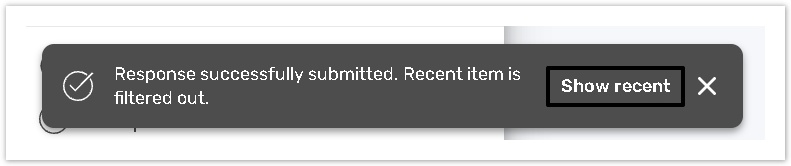 If a newly created response / task is not displayed on the portal, the system displays a notification message. Click the Show recent button to activate the Recent filter. The filter will display a task / response that you have just created.
