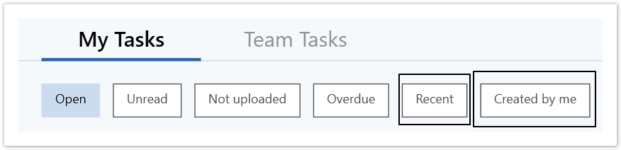The activated Recent filter allows you to see the responses or tasks that were saved/submitted/created/updated during the last 2 days.