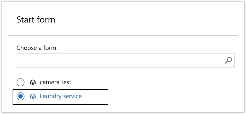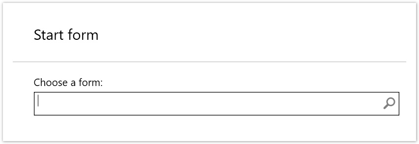 If you click the +Start form button from the specific Form or Task Definition page, the corresponding Form / Task Definition option will be chosen by default. Therefore, the Start form button will be active.