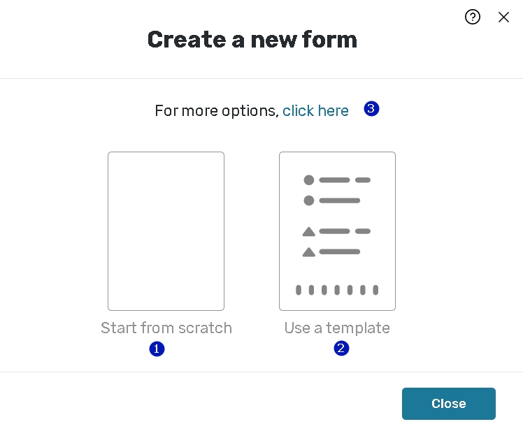 1. Start from scratch - use this option if you want to create a form by manually adding questions and logic setups.