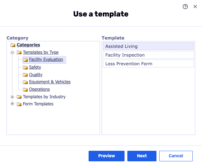 2. Use a template - this option gives you an access to the library of form templates split into different categories.