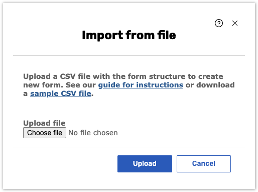 When creating a form, you can devise a form structure along with the questions and answer options offline and import it via a CSV file.