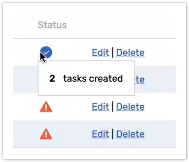 The icon (1) displays the number of created task. Hover over the icon to see the statistic information.