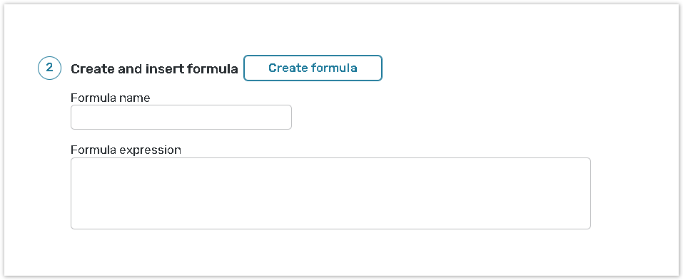 3. Click the Create Formula button to create formula for calculating custom statistical quantities and then click on Insert to the right of the formula to put it into the text box above. Formula values will be calculated automatically and will be displayed within the online report.