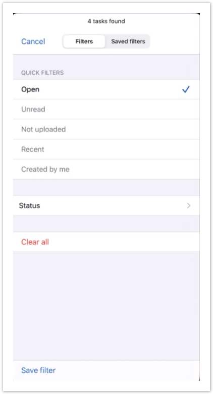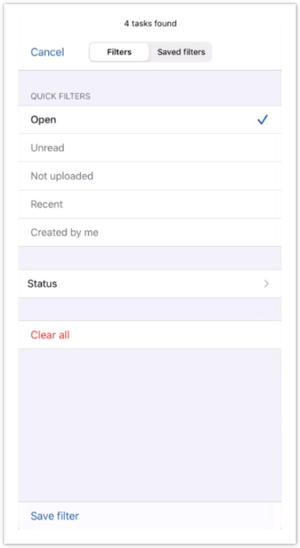 Click Save filters to return to the Tasks screen showing filtered results.