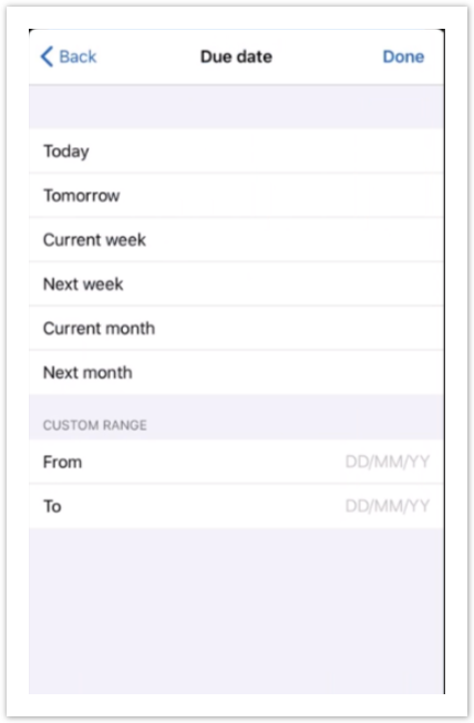 For the Due date parameter only one value or range can be selected: