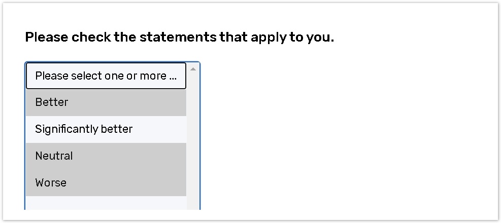 This question type allows the respondent to choose one or several answer options from a list.