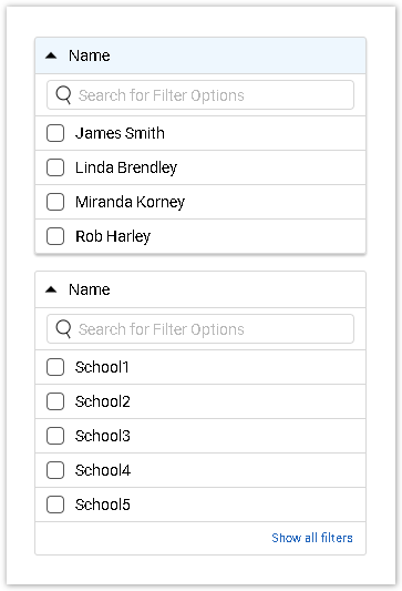 If the list of filter options is long, you may use the Search field to find the necessary answer option. To exit the Search mode, click the Clear button or collapse the filter: