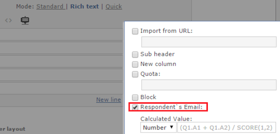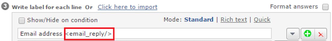 Alternatively, switch to the Standard editing mode and insert the <EMAIL_REPLY/> tag into the answer option field: