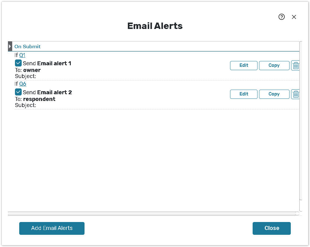 Email Alerts are sent once the respondent has clicked the Submit button.