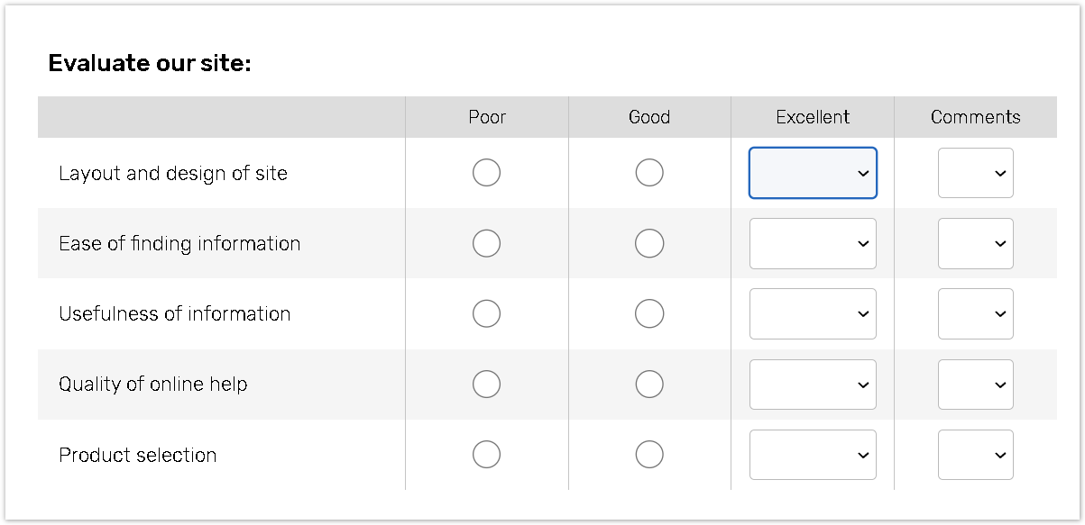 Use this option if you want your respondents to rate all of the listed items.