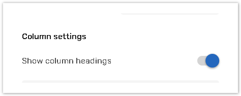 Turn the Show column headings toggle off in the Column settings section on the right panel.