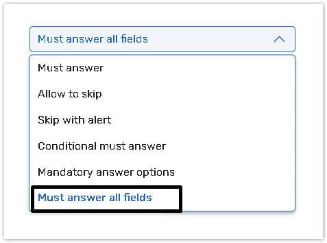 This option is used to make all items mandatory to answer. Choose one of the options from the dropdown menu in the right panel.