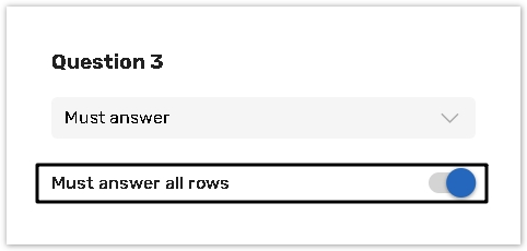 Select this option to make only certain answer choices within a question mandatory to answer.