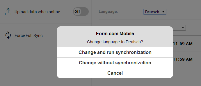 Change and run synchronization will trigger the sync and change both the Portal interface and the multilingual form's language.