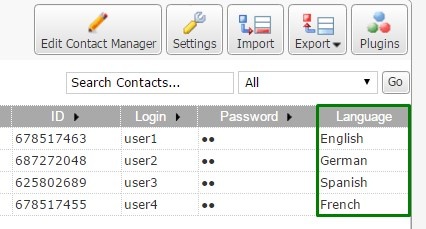 When you publish multilingual forms to the Portal for them to be used offline, you need to add a 'language' column in the Contact Manager and specify the language preference for each contact: