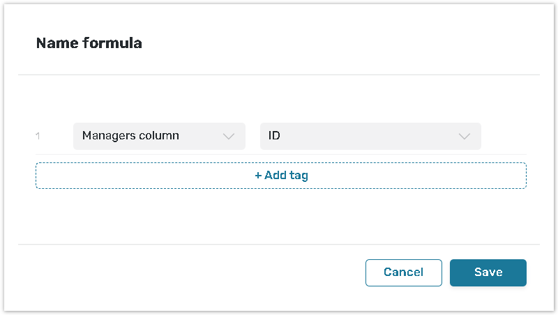 To add a new row for formula parameters configuration click the +Add tag (3) button.