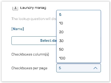 Checkboxes per page: Select the number of checkboxes per page from the dropdown list.