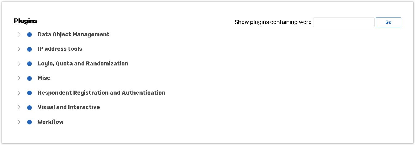 Select the plugin either from the list of the Plugins group or type a word containing the plugin's name into a search string to add it to your form;