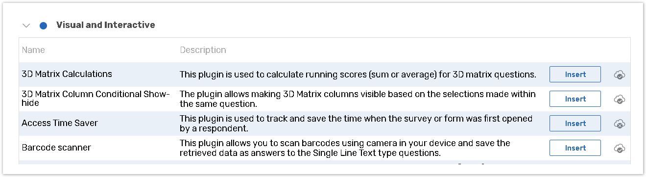 Choose a plugin and click the Insert button;