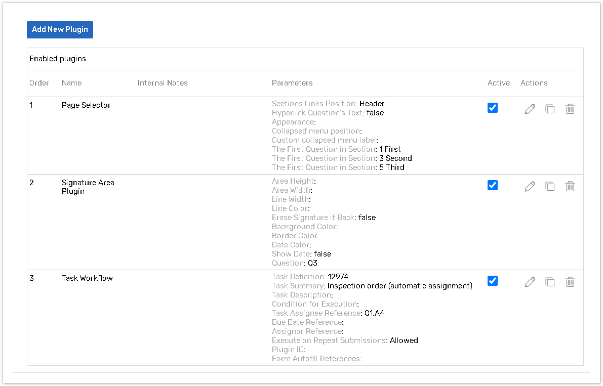 Once you have adjusted the selected plugin's settings, the plugin will appear on the list of plugins added to the form;