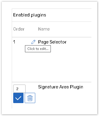 Click the Edit pencil next to a plugin's number in the list to change it.