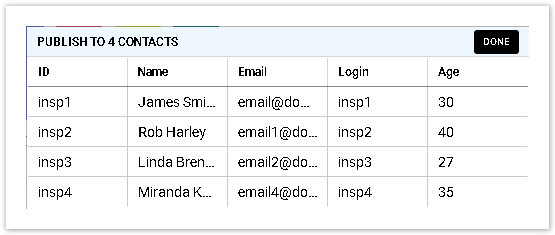 To make sure that the Dashboard is going to be published to the right people, you may preview the list of contacts. To do so, click the hyperlinked number of contacts at the bottom of the Publish Panel: