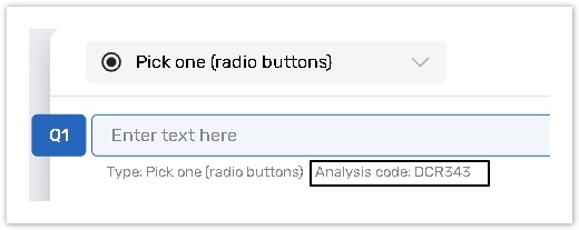 Once the question identifier is set, it appears on the central panel (as in Question analysis code case).