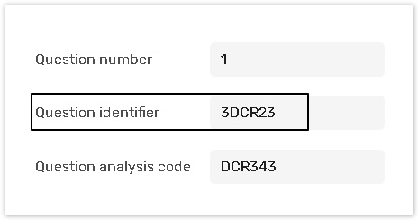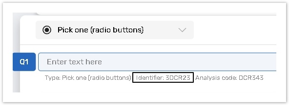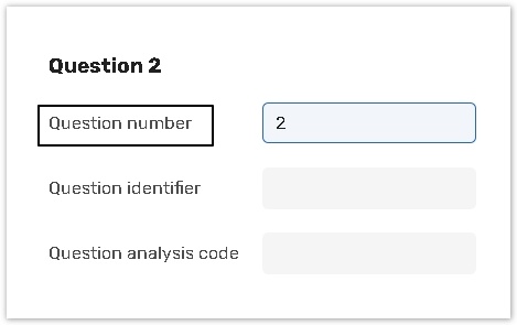 Use the Question identifier to assign a custom identification (a custom name or number) reference to a question.