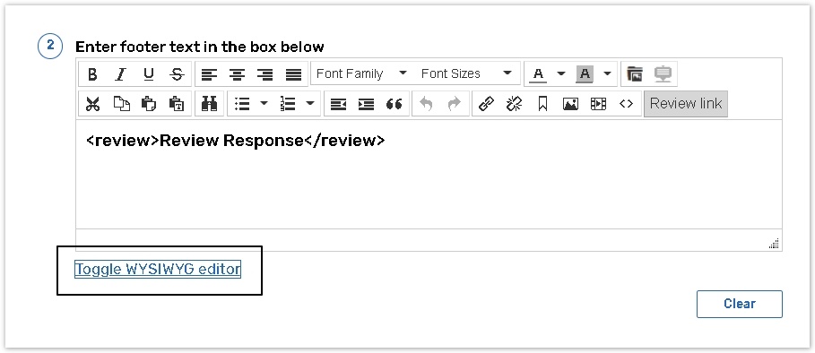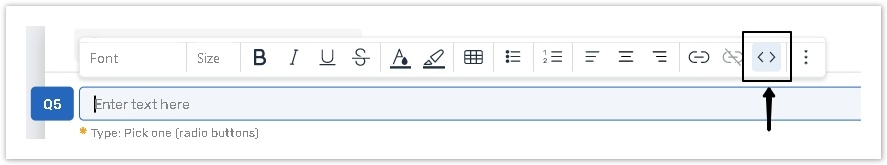 If you want to use the Review tag on the Enter question field, click the Source code button to highlight the text you want to appear as hyperlink.
