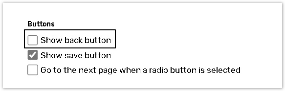 Uncheck the Do not show back button box.