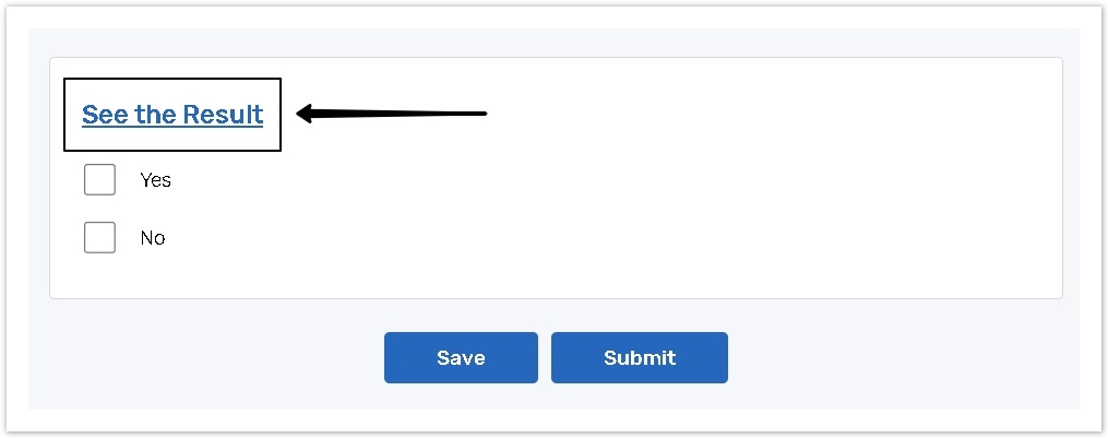 You can show the respondents their results before they submit a form, allowing your respondents to print their results. If the respondents have already completed the survey and come back to it, they can look through the results on all the pages of the survey despite the position of the review link.