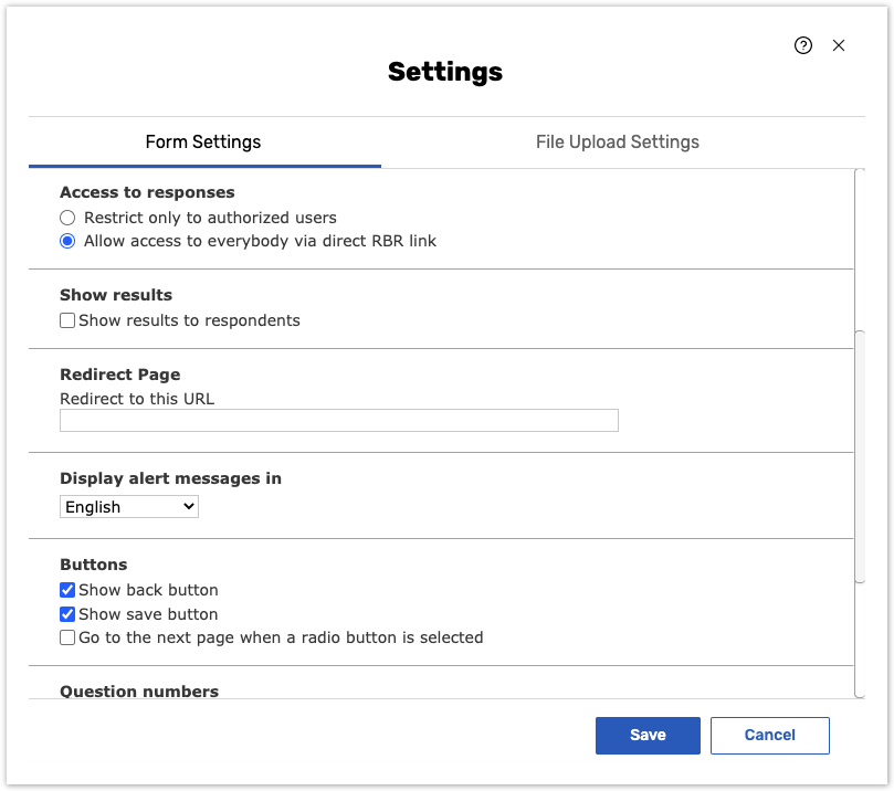 Click Save at the bottom of the screen to save changes and go back to the Questions page.
