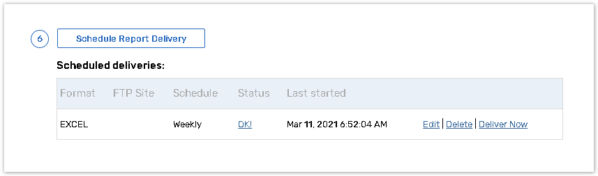 2. Press Deliver Now next to the report you want to be delivered for manual download.