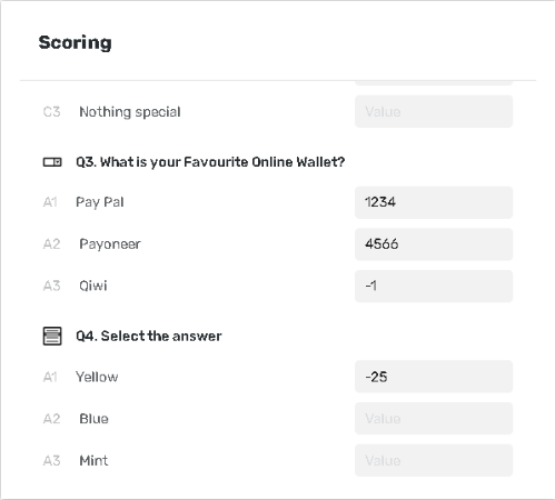 Set a Value for an answer. In the 'Value' placeholder indicate how many points respondents can score for each answer.