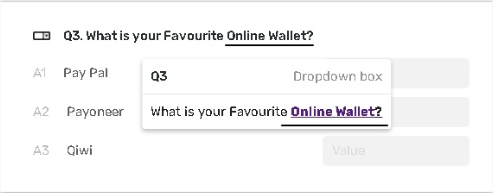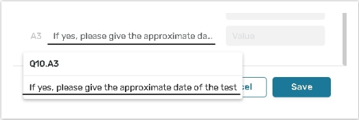 If a question's name or answer option is too long, hover over it to read its full name, question type, and numeric position.