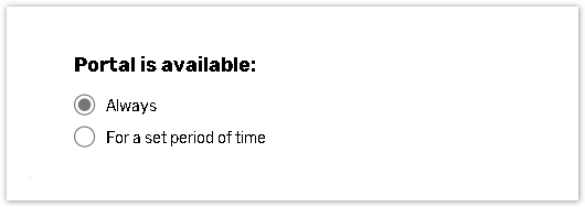 Set up Portal activation date and time so the Portal is opened for respondents for a set period of time or make it accessible all the time by selecting the Always option.
