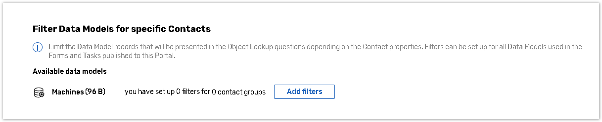 Data Model filtering allows to limit the Data Model records that will be presented in the Object Lookup questions depending on the Contact properties.