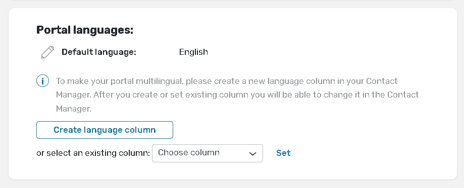 To set up the additional supported languages for the portal, you must have the language column in your Contact Manager.