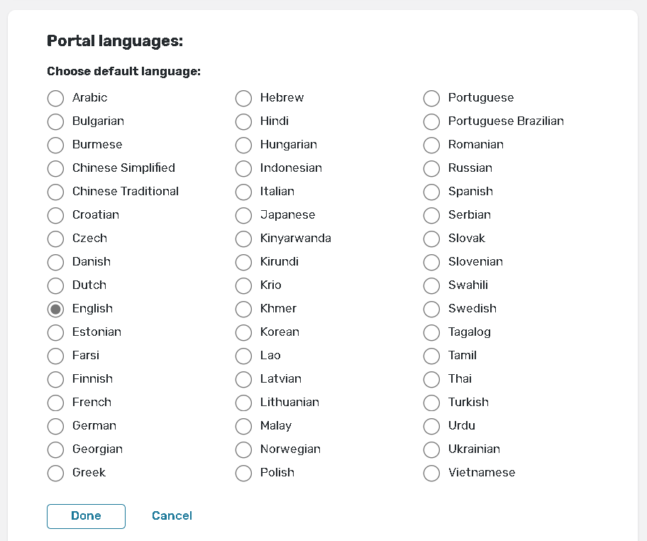 Use this section to set up additional languages to be used on the portal.
