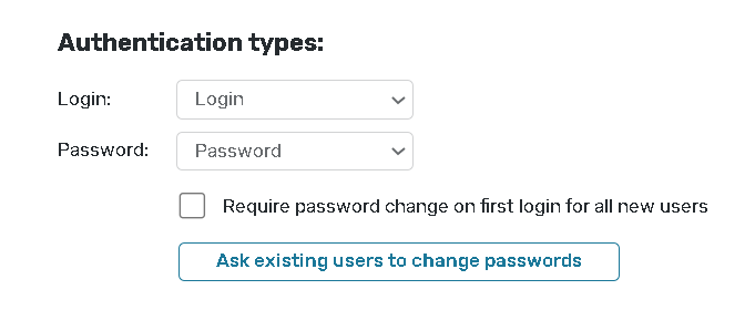 If the Require password change for all existing users option is checked, all existing contacts will be asked to change their password upon logging into the portal for the first time or their next login.