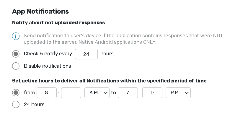 Send notification to user's device if the application contains responses that were NOT uploaded to the server. Native Android applications ONLY.
