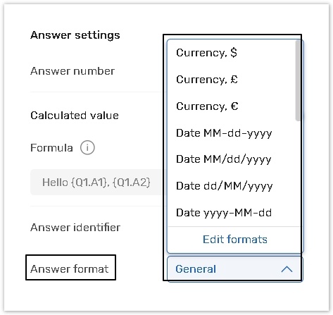 2. Select the answer format from the dropdown menu or click the Edit format button to customize formats.
