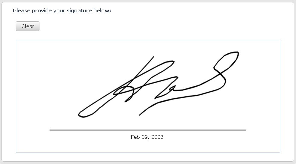 Upon applying the Plugin there should be a field of 300x700px which would allow the respondent to sign their response with a black color line and 2px width