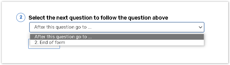 Select the next question to follow the question above Use the corresponding drop-down box to select a question or a page that respondent should be routed to after this question.
