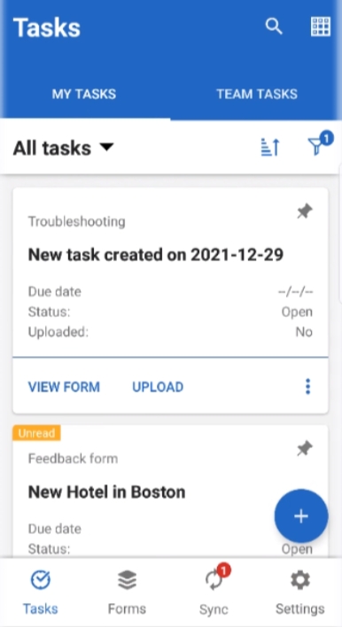 Upload - Uploads the task changes (e.g. saved or submitted form, due date change, status change) to the server.