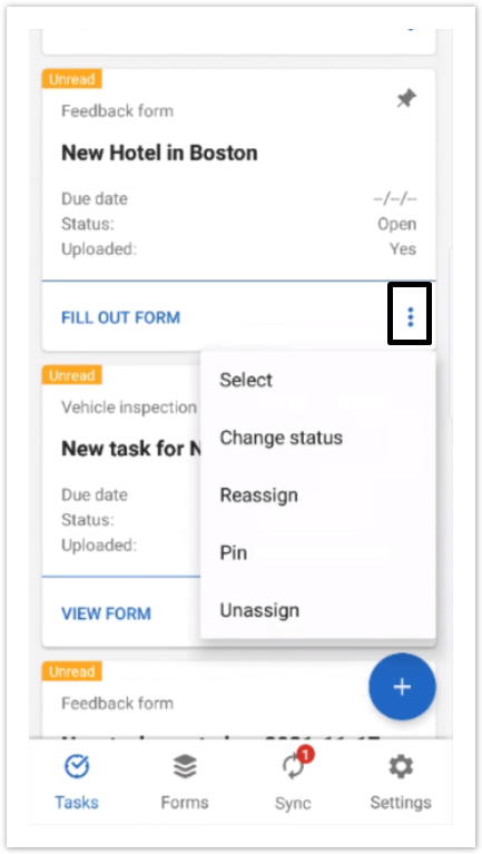 Fill Out Form (for new tasks) - Opens the form attached to the task.