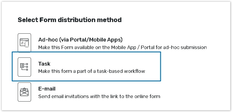 If a form is attached to a task definition all other distribution methods are disabled for the form on the Launch page.