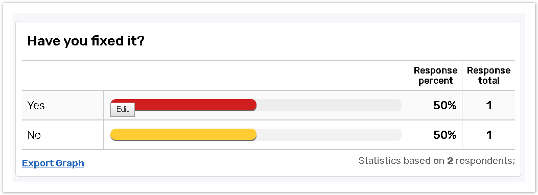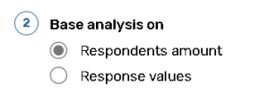 ![]() | Select the Respondents amount option to design tables and graphs according to the total number of respondents for each answer option in a question. Select the Response values radio button to design tables or graphs according to the values assigned to the responses multiplied by the total number of respondents for each answer option in a question. |